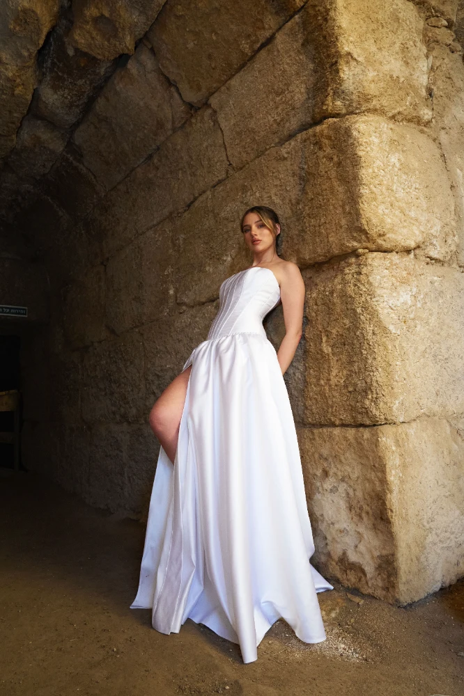 עיצובים שנולדו מתוך ההקשבה לכלות שלי – שמלות עם קווים מחמיאים, פרטים עדינים, ובדים יוקרתיים שמחבקים את הגוף.